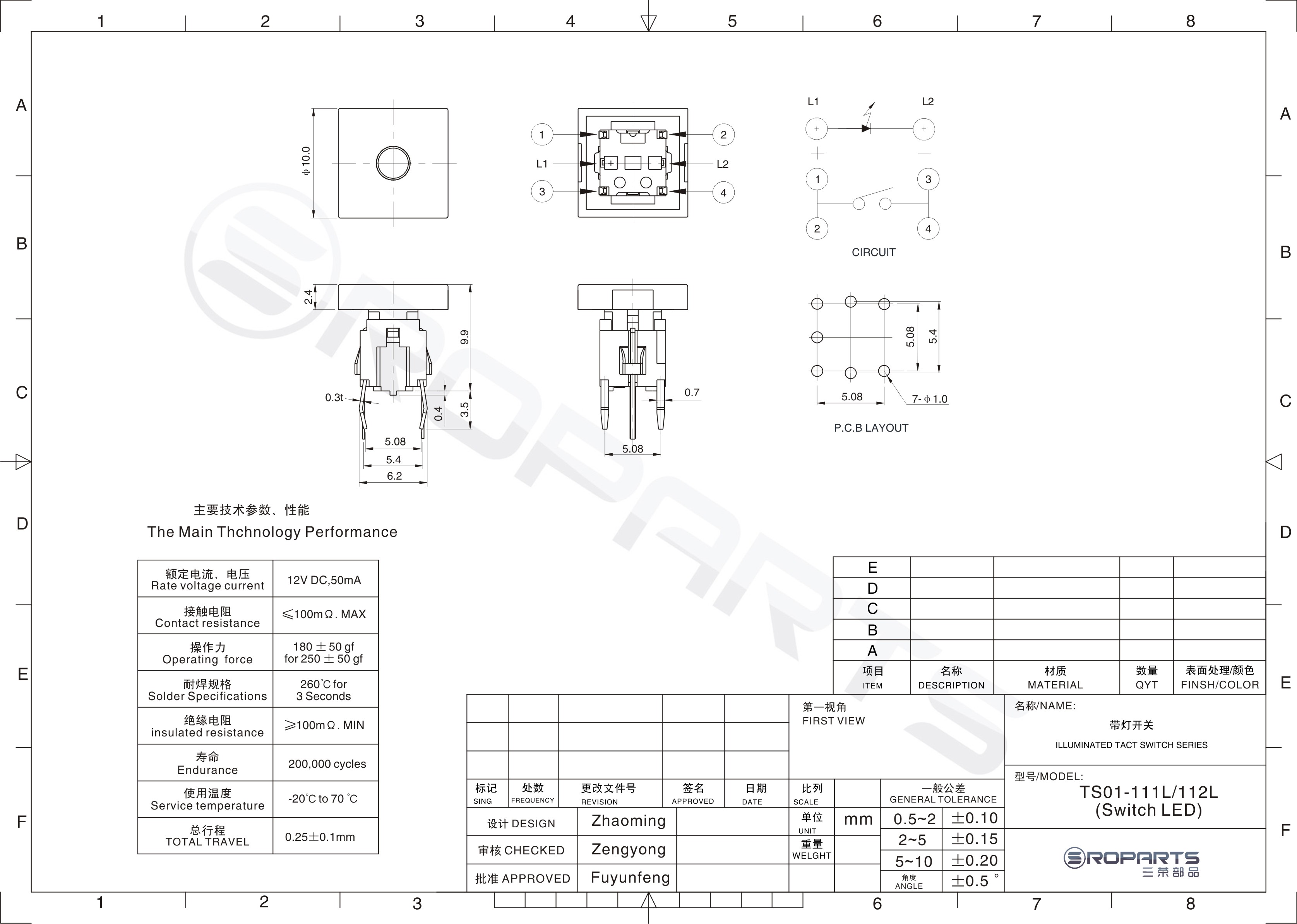 帶燈輕觸開關(guān) TS-03L(Switch LED)