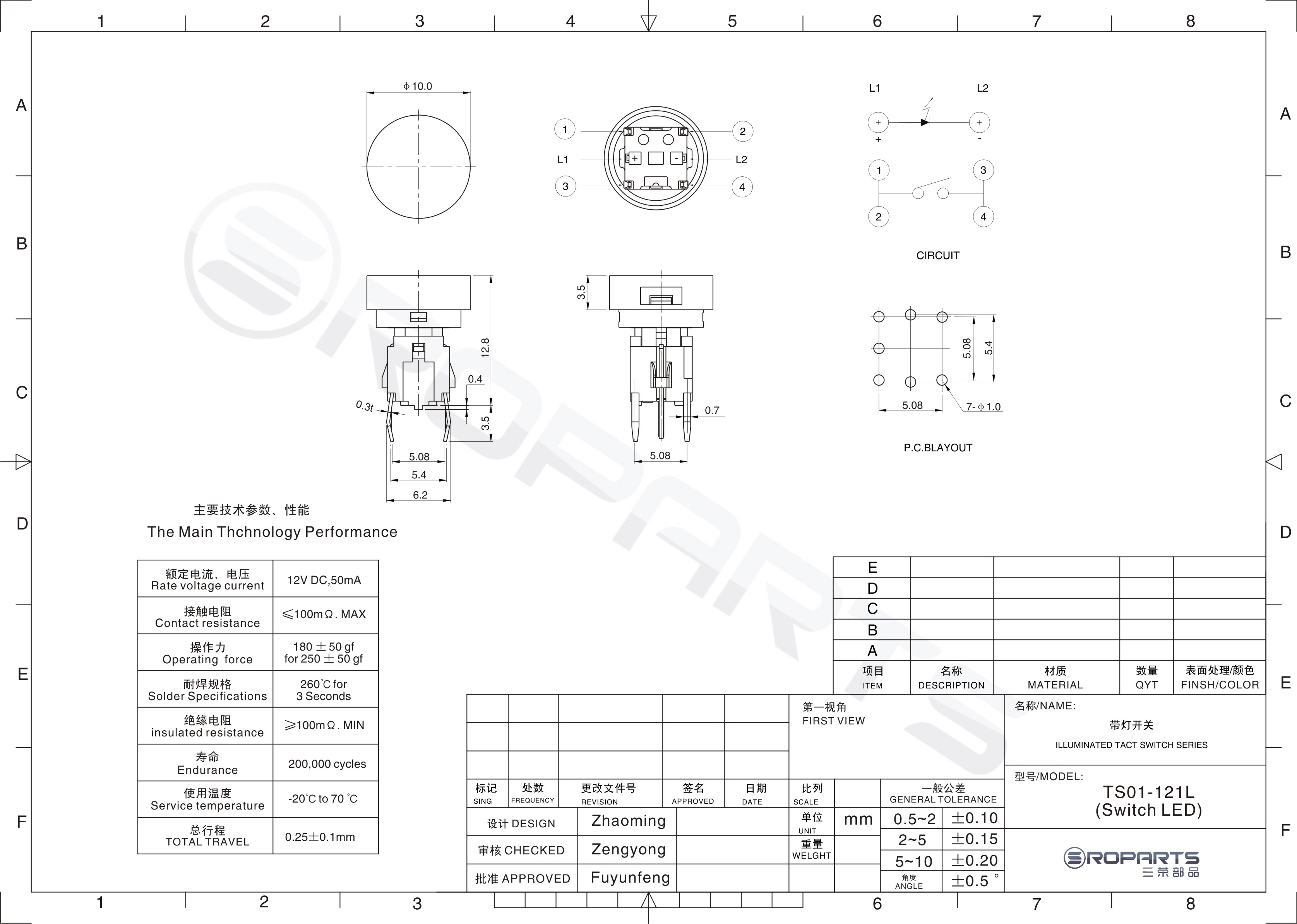 帶燈輕觸開(kāi)關(guān) TS03-310RL(Switch LED)