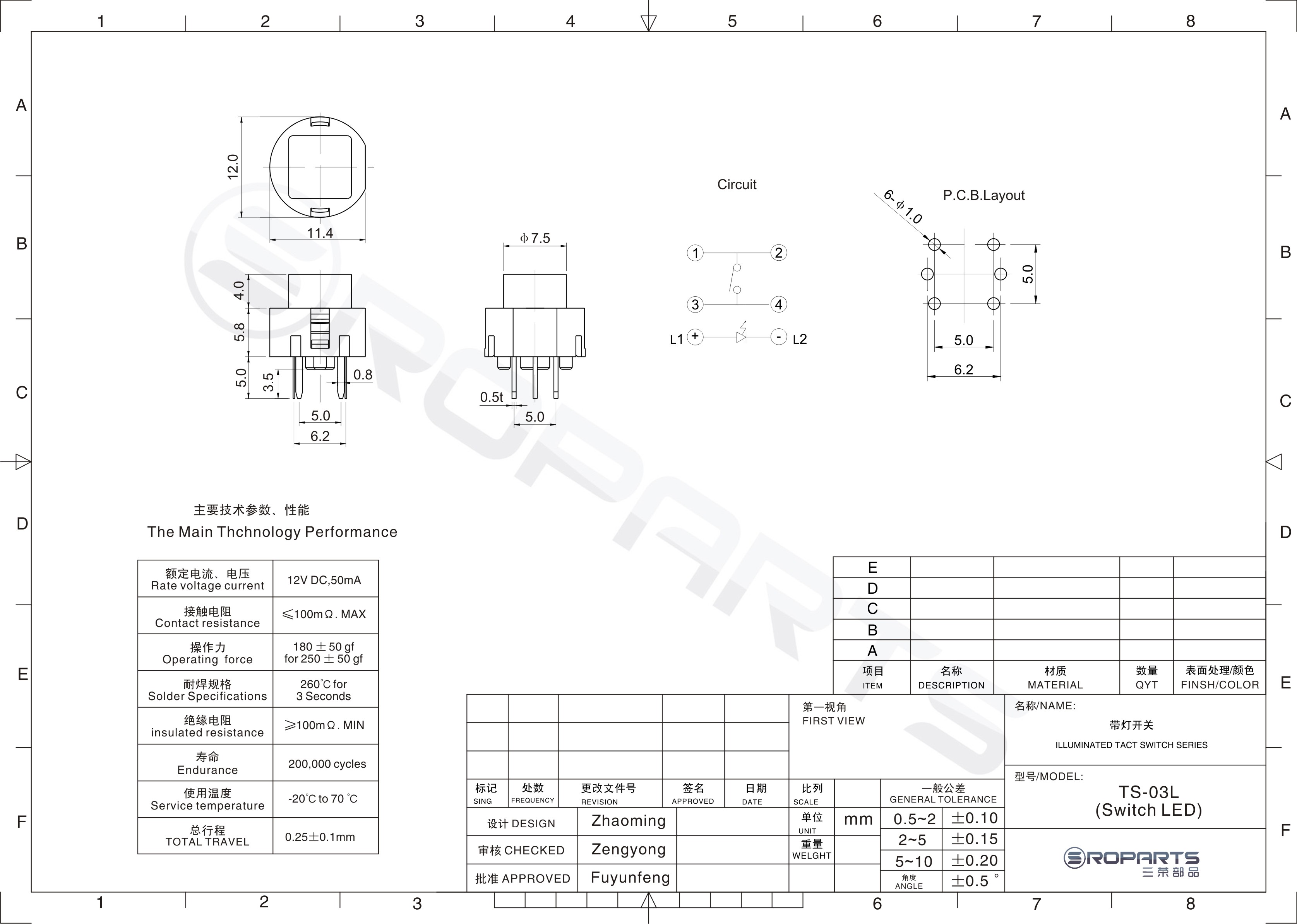 帶燈輕觸開關 TS03-310RL(Switch LED)