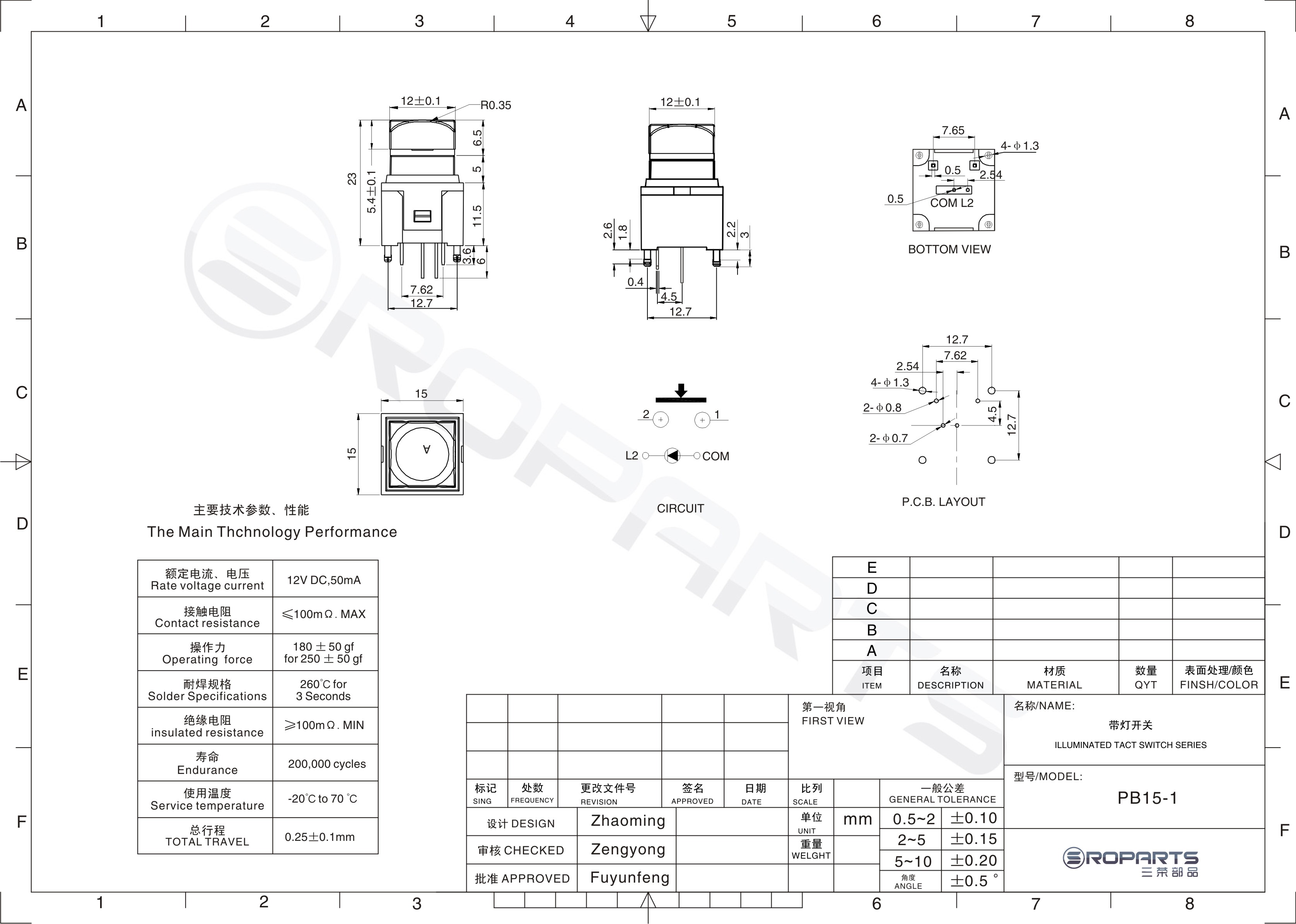 帶燈輕觸開(kāi)關(guān) TS-03L(Switch LED)