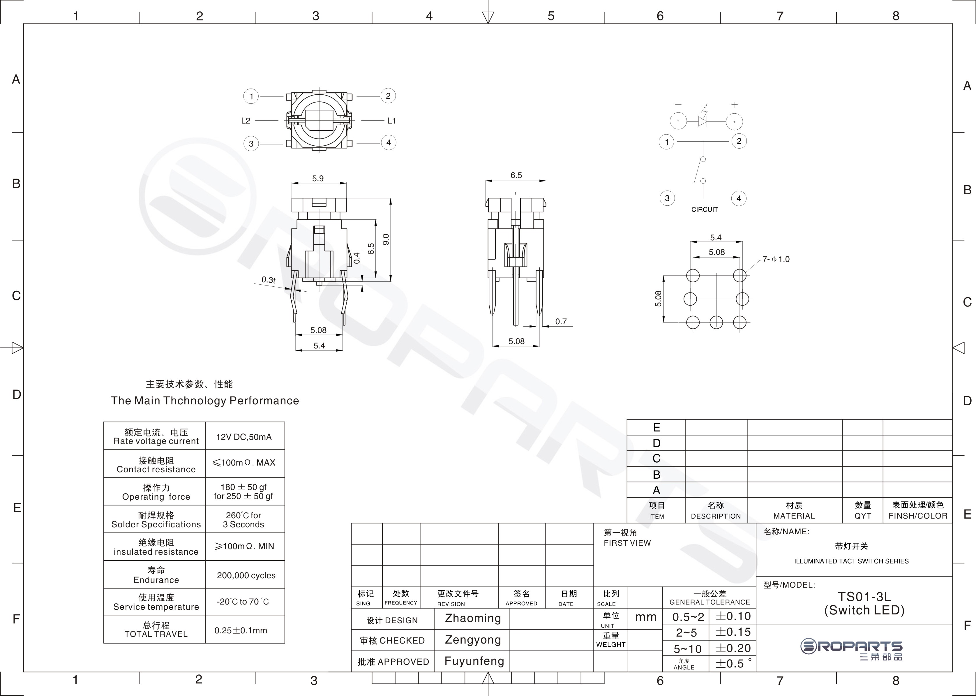 帶燈輕觸開關(guān) TS03-310RL(Switch LED)