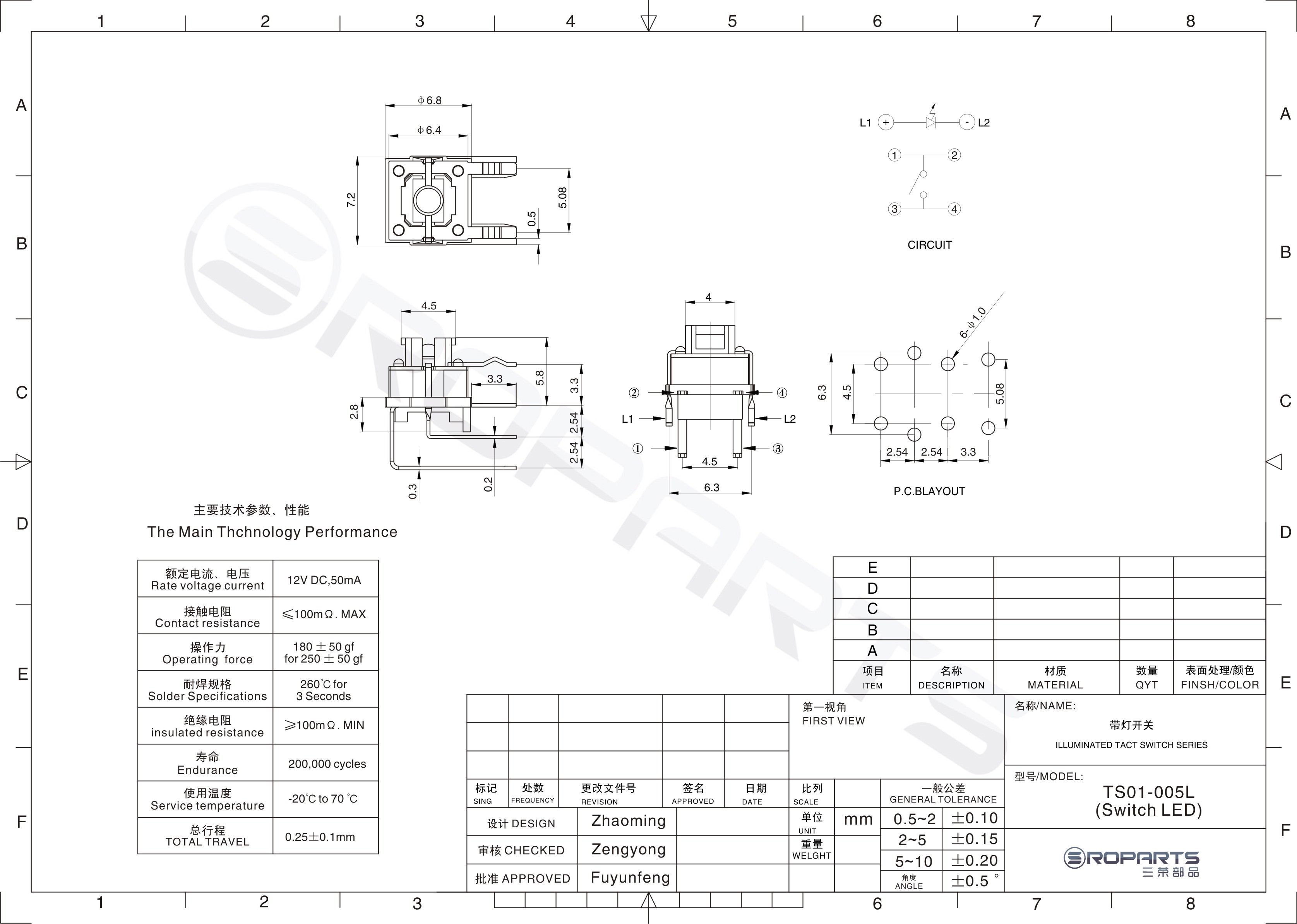 DIP帶燈輕觸開關(guān) TS01-005L(Switch LED)