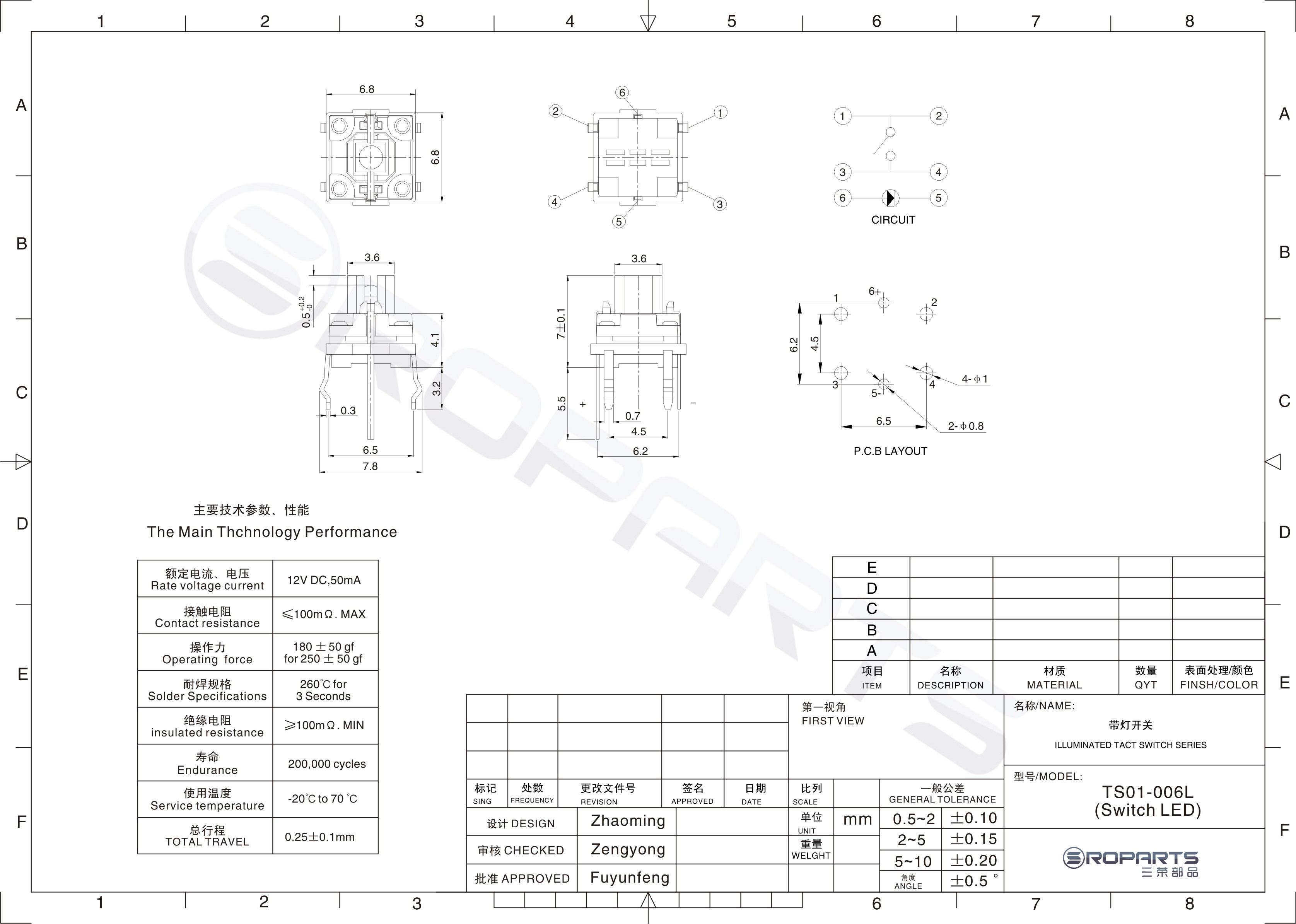 帶燈輕觸開(kāi)關(guān) TS-06L