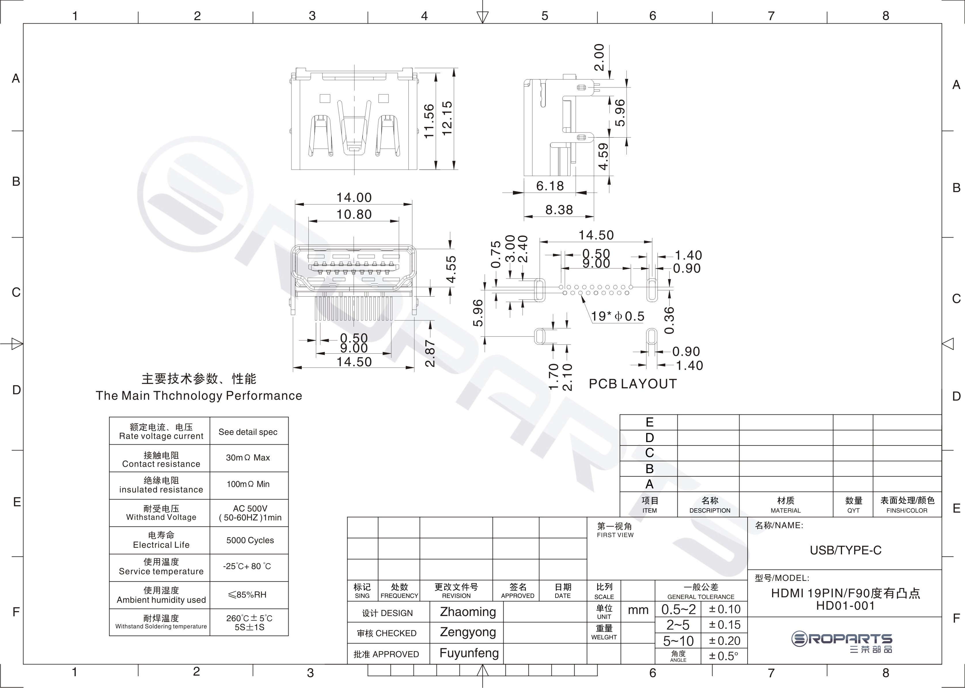 5. 使用壽命: 5,000 cycles   6. 使用溫度: -25 ℃  to 80 ℃