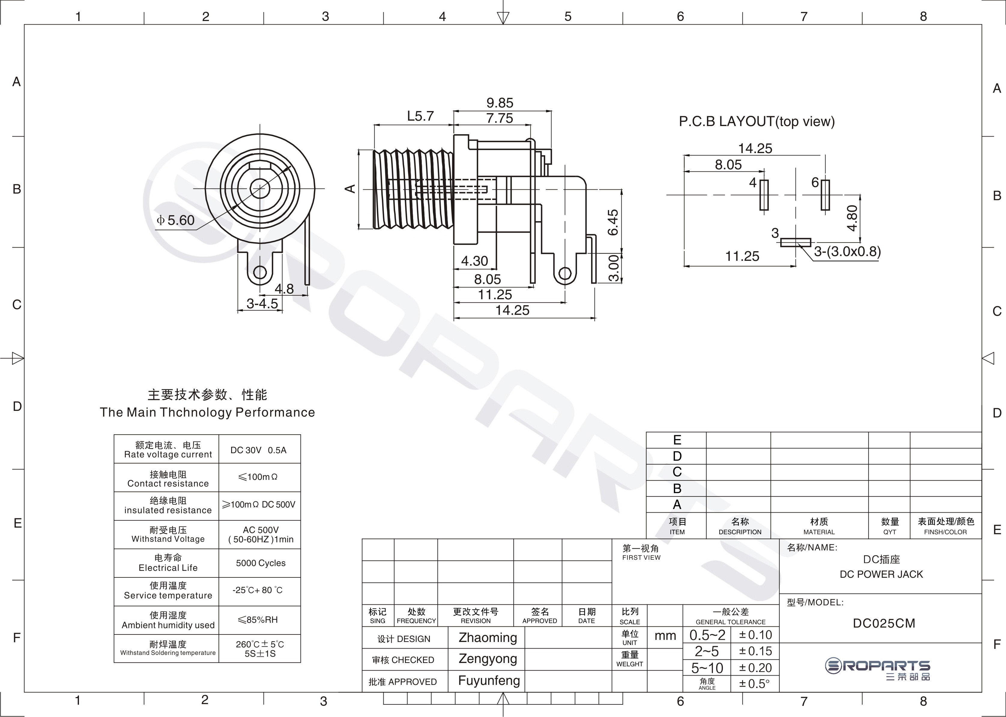 5. 使用壽命: 5,000 cycles   6. 使用溫度: -20 ℃ to 80 ℃