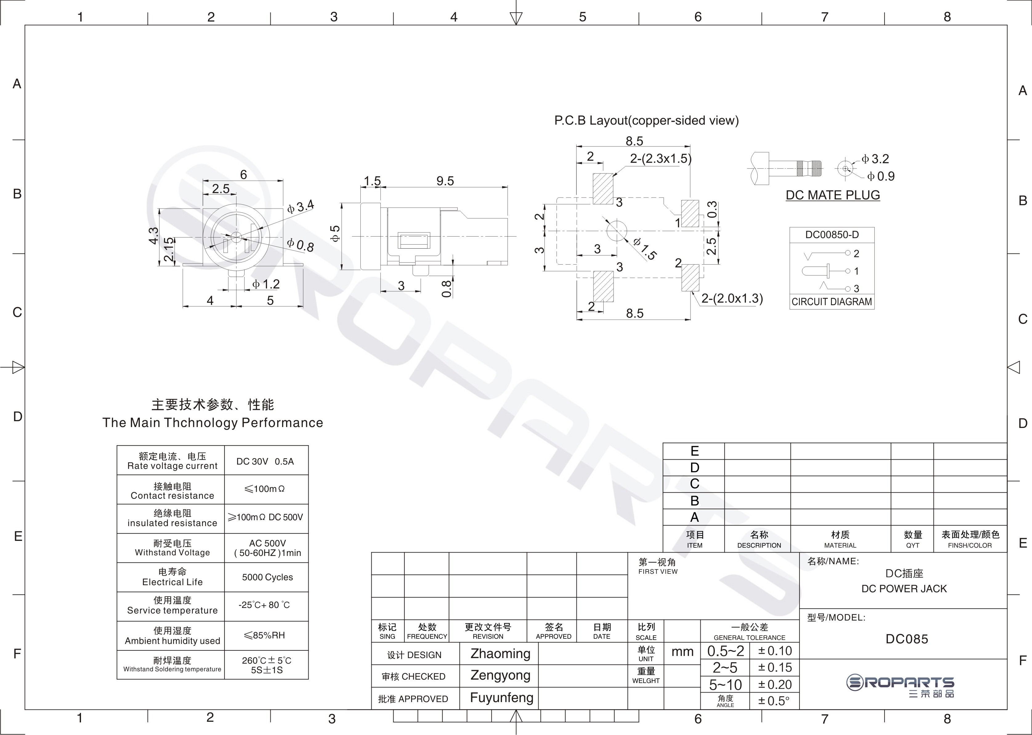 1. 額定負(fù)荷: DC 30V 0.5A 2. 接觸電阻: ≤100mΩ