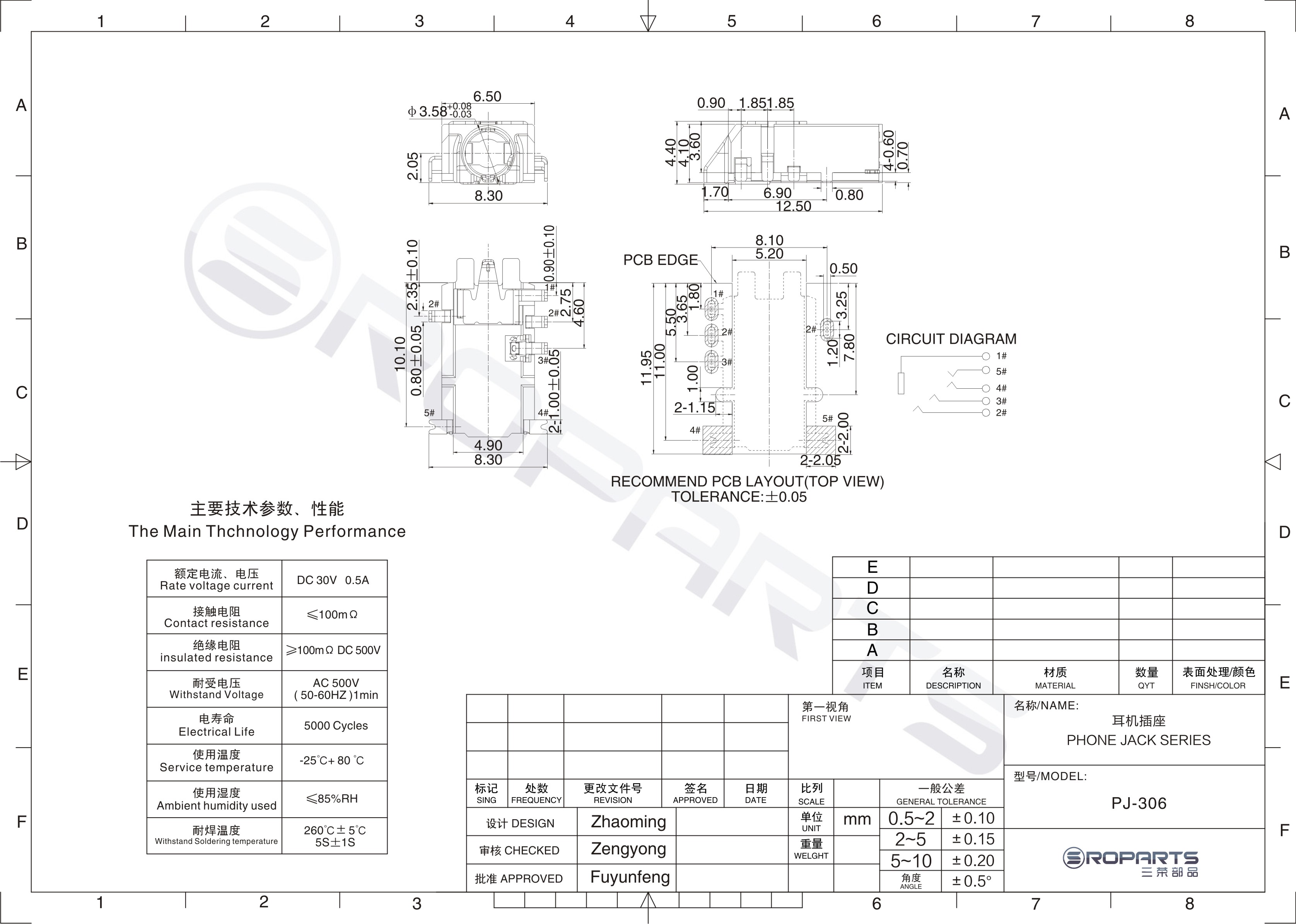 耳機(jī)插座技術(shù)參數(shù):