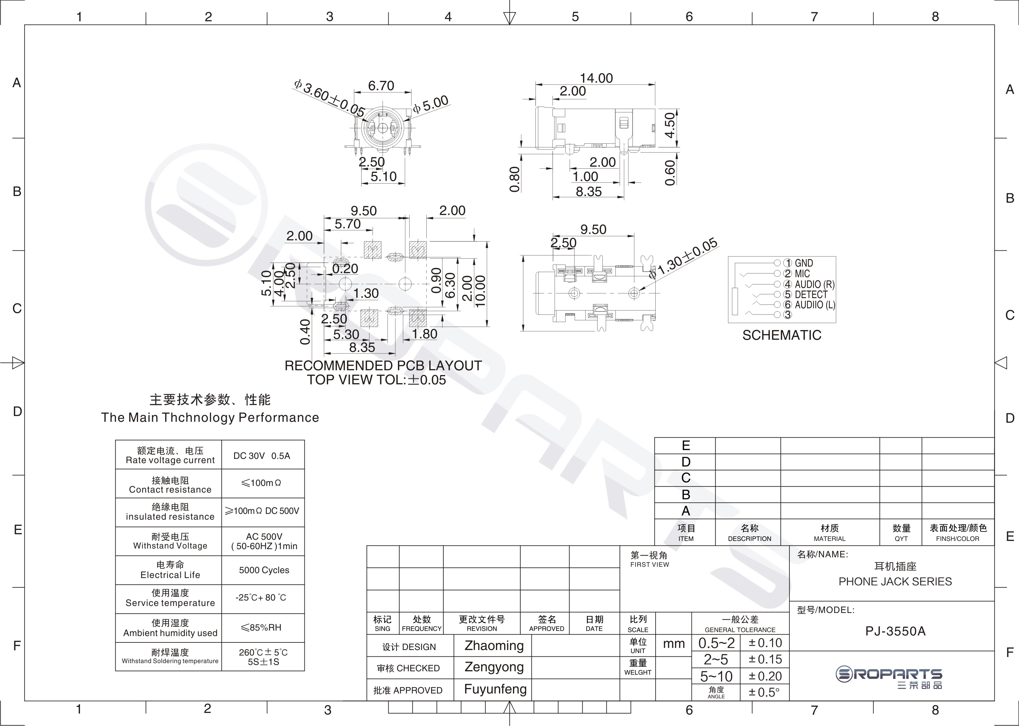 5. 使用壽命: 5,000 cycles   6. 使用溫度: -20 ℃ to 80 ℃