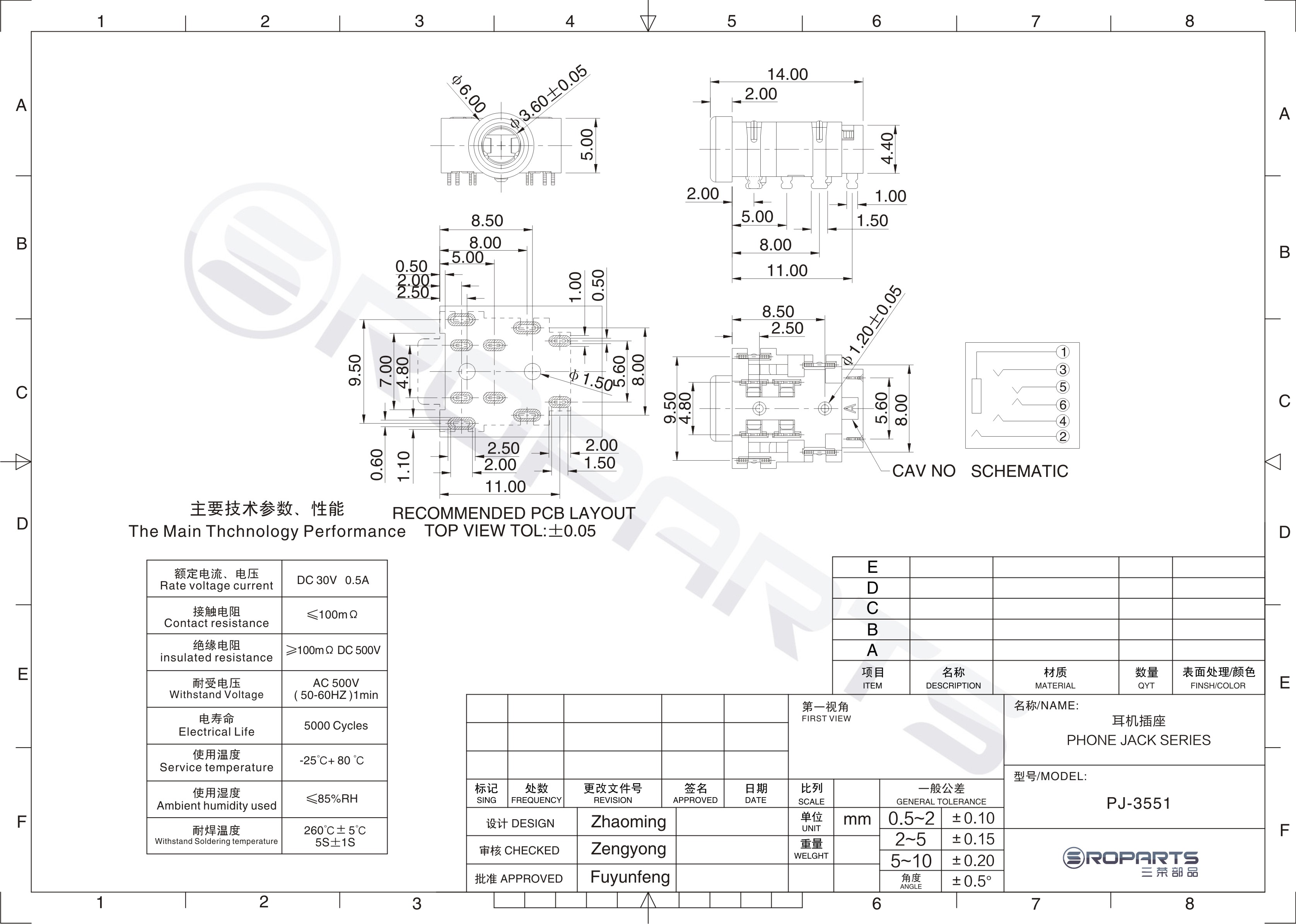 3. 絕緣電阻: ≥DC 500V 100mΩ   4. 耐焊溫度: 250±5° 5s±1s